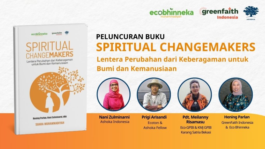 Jakarta, September 11, 2025 – Ashoka Indonesia, together with Eco Bhinneka Muhammadiyah and GreenFaith Indonesia, launched the book Spiritual Changemakers: A Lantern of Diversity for Earth and Humanity in Jakarta on Thursday (9/11). The book documents the collaborative journey of interfaith initiatives in caring for the Earth, strengthening empathy, and advancing socio-ecological justice.