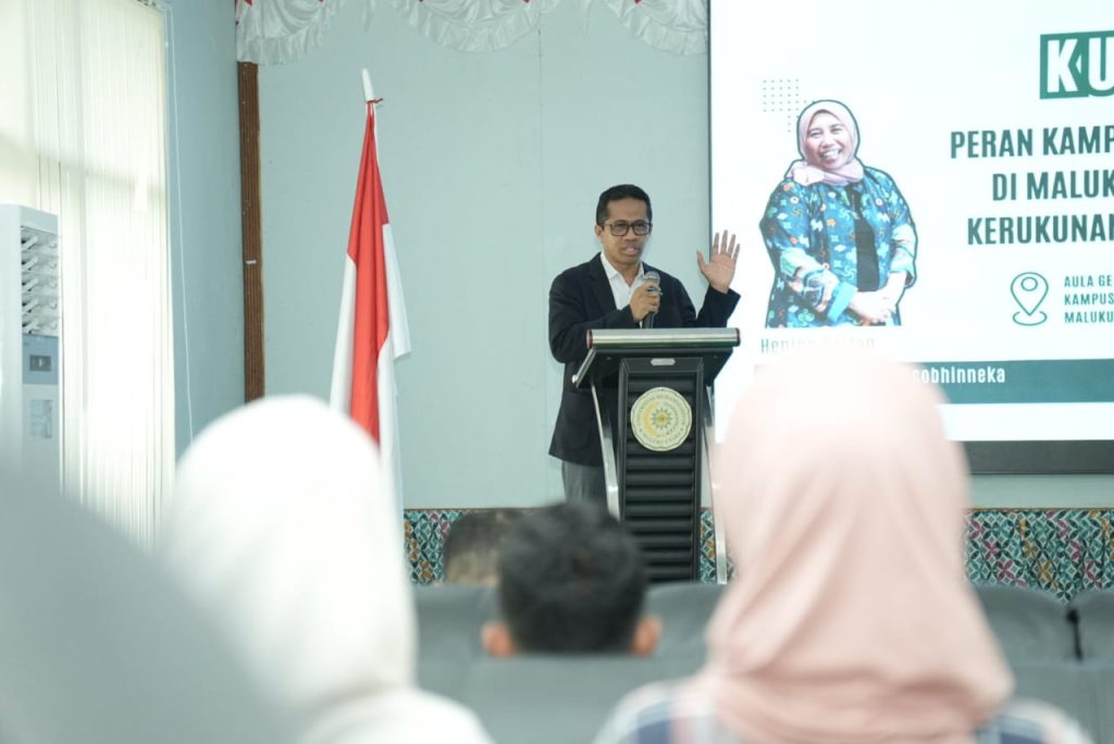 Ket. : Hening Parlan, Direktur Program Eco Bhinneka Muhammadiyah, hadir sebagai narasumber Kuliah Umum di Universitas Muhammadiyah Maluku Utara 29 Agustus 2025