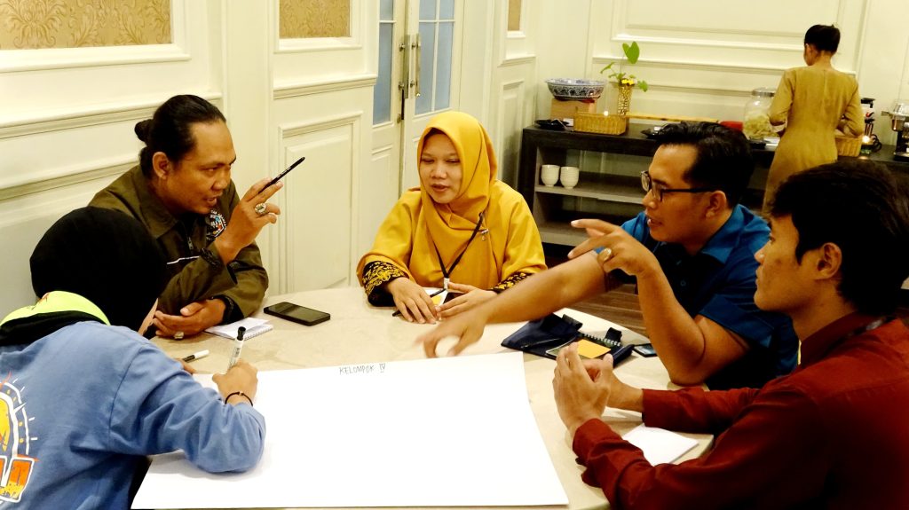 Ket. Diskusi kelompok dalam kegiatan Training of Trainer (ToT)